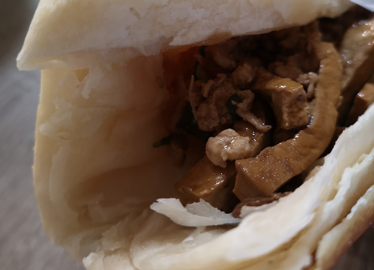 看到評價4.8顆星結果期待太高了,燒餅夾這些料雖特別,但整體吃起來就像自己在家炒個菜然後包到燒餅裡這種感覺,沒有不好吃,但不是驚為天人