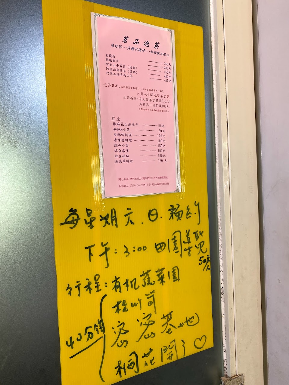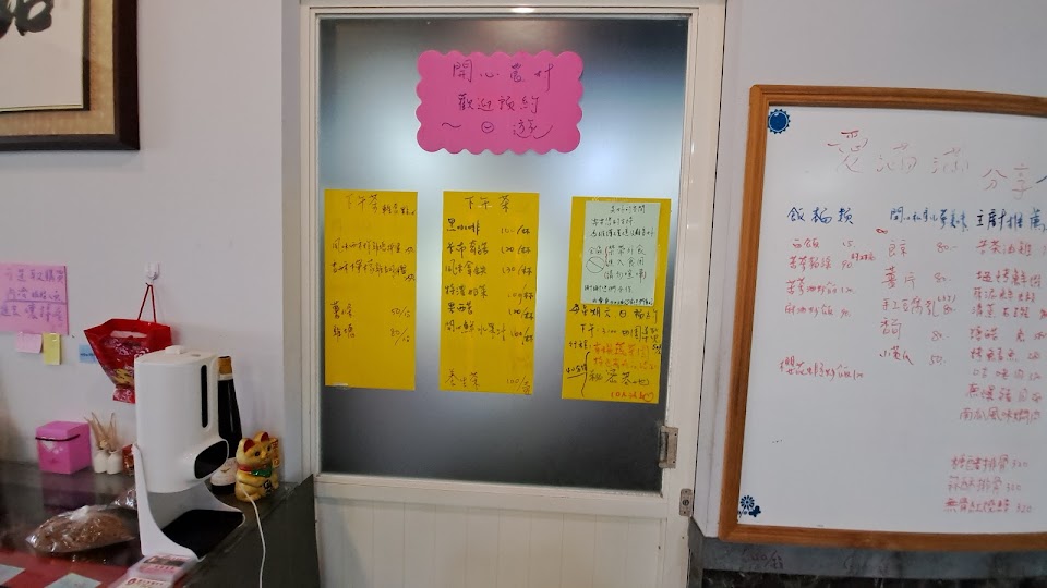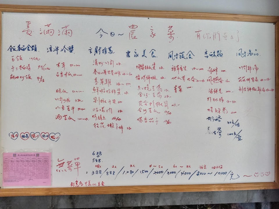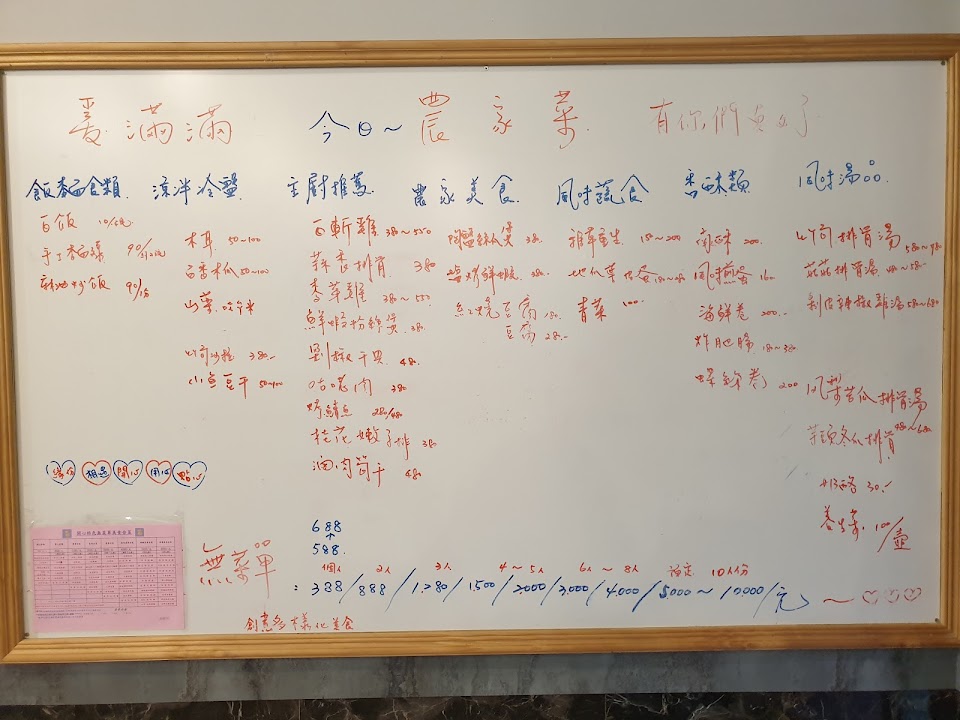 菜單是寫在白板上,視當日店家準備的食材而定,若提早賣完就會從白板擦拭掉。庭園有老闆親植的松柏盆栽,很值得觀賞拍照。老闆夫妻風趣幽默健談,待客如同家人般親切。除了用餐外,也可泡茶品茗,店內也販售農產蔬果跟菜脯、辣椒醬等手製產品。