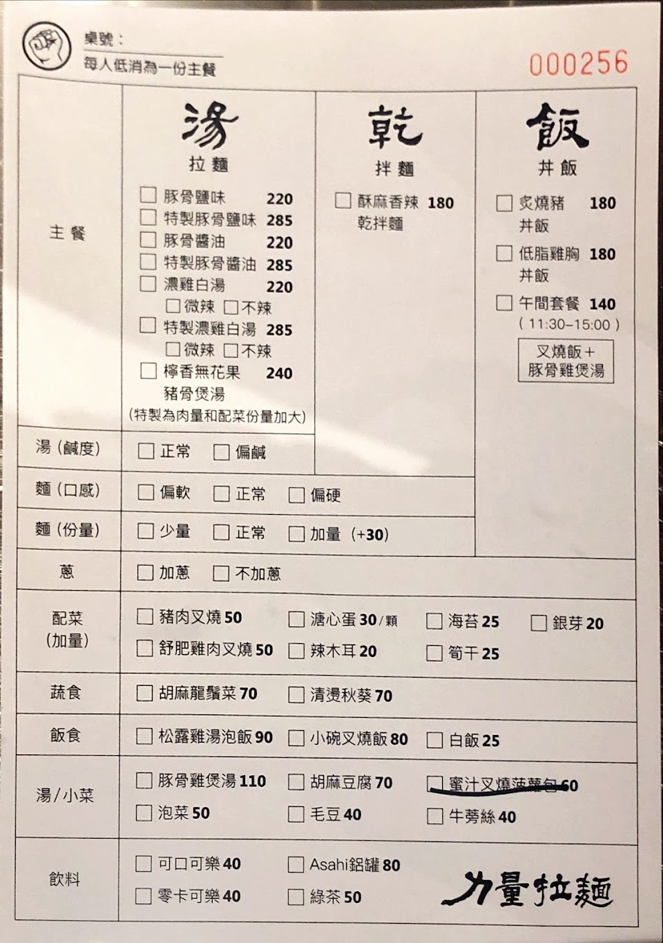 麵:填單時註明硬麵,但上桌時麵是完全黏在一起的,而且其中一碗加麵、吃完後的湯喝起來是麵粉水的味道,從來沒有吃過哪家拉麵店能把麵煮的這麼……你覺得這樣的品質可以稱自己是拉麵店?
