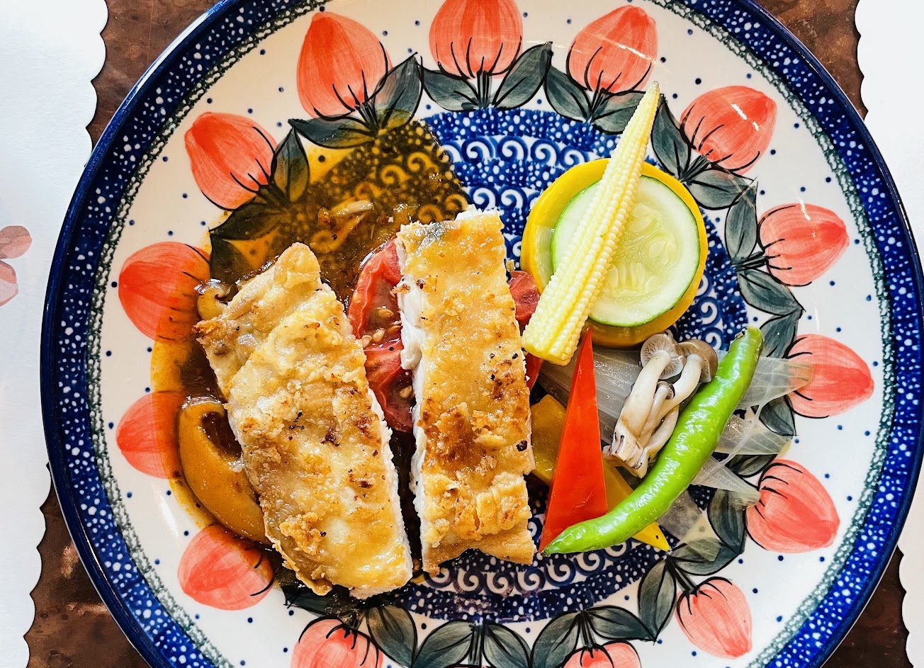 菜色份量十足,餐盤也非常有特色