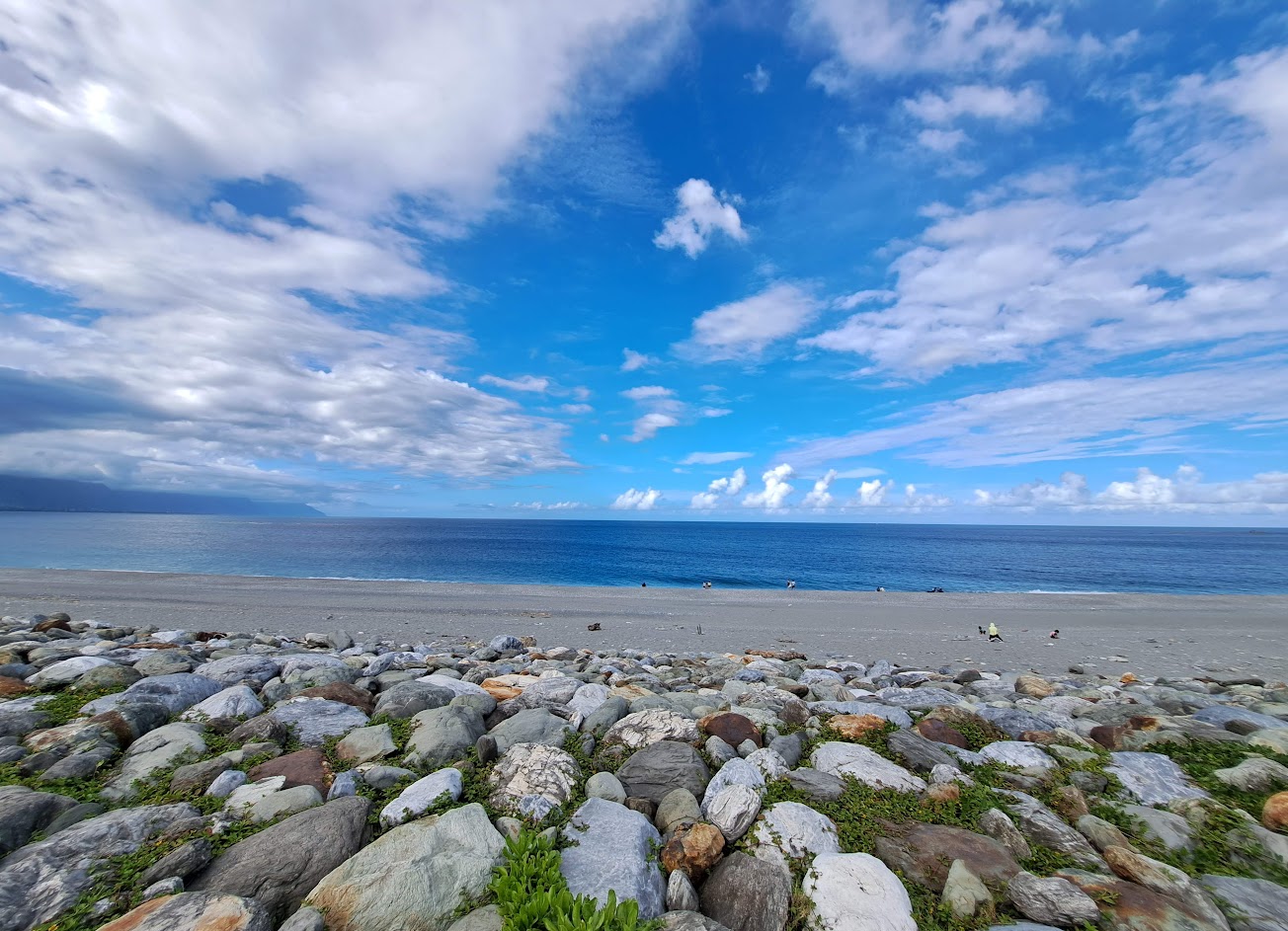 來到花蓮必定要到七星潭,除了擁有湛藍海岸線,還有如新月形的弧形海灣,一眼望去真的好美。