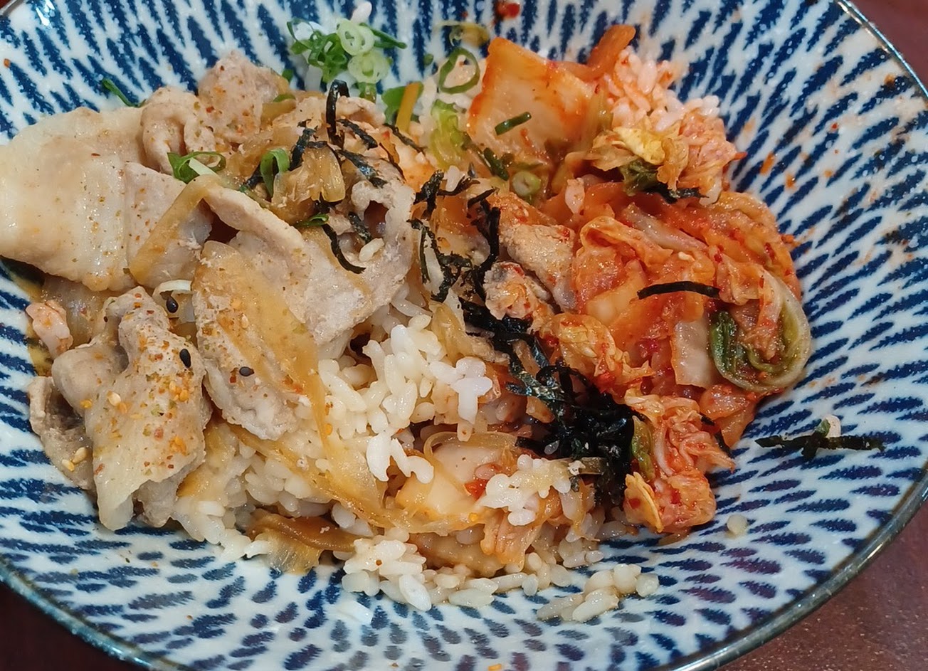 大推牛五花丼跟泡菜。 ???