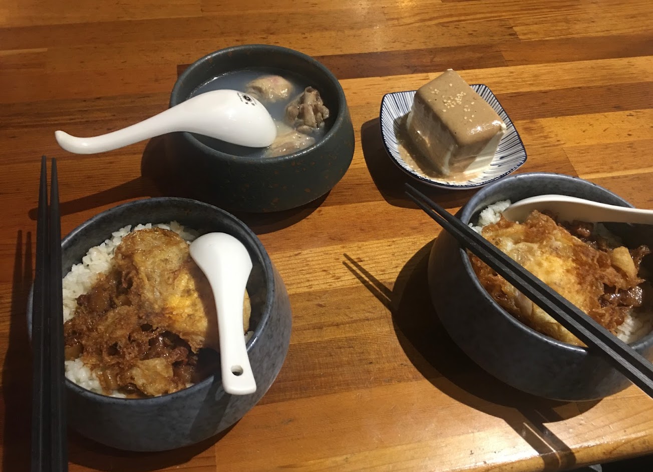 最後就外帶半熟蛋滷肉飯、蒜頭雞湯、胡麻豆腐