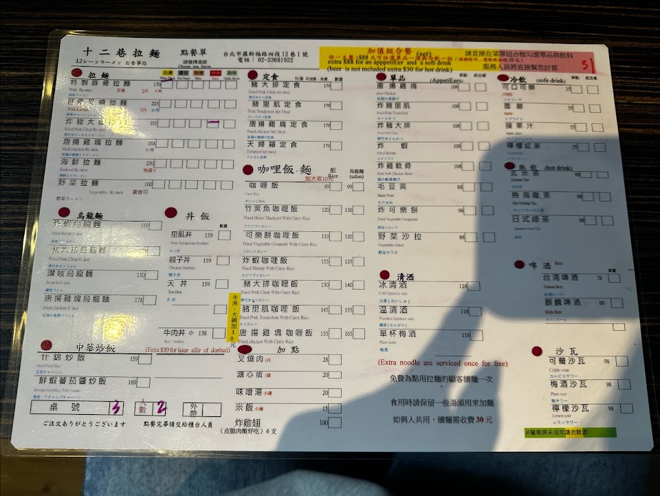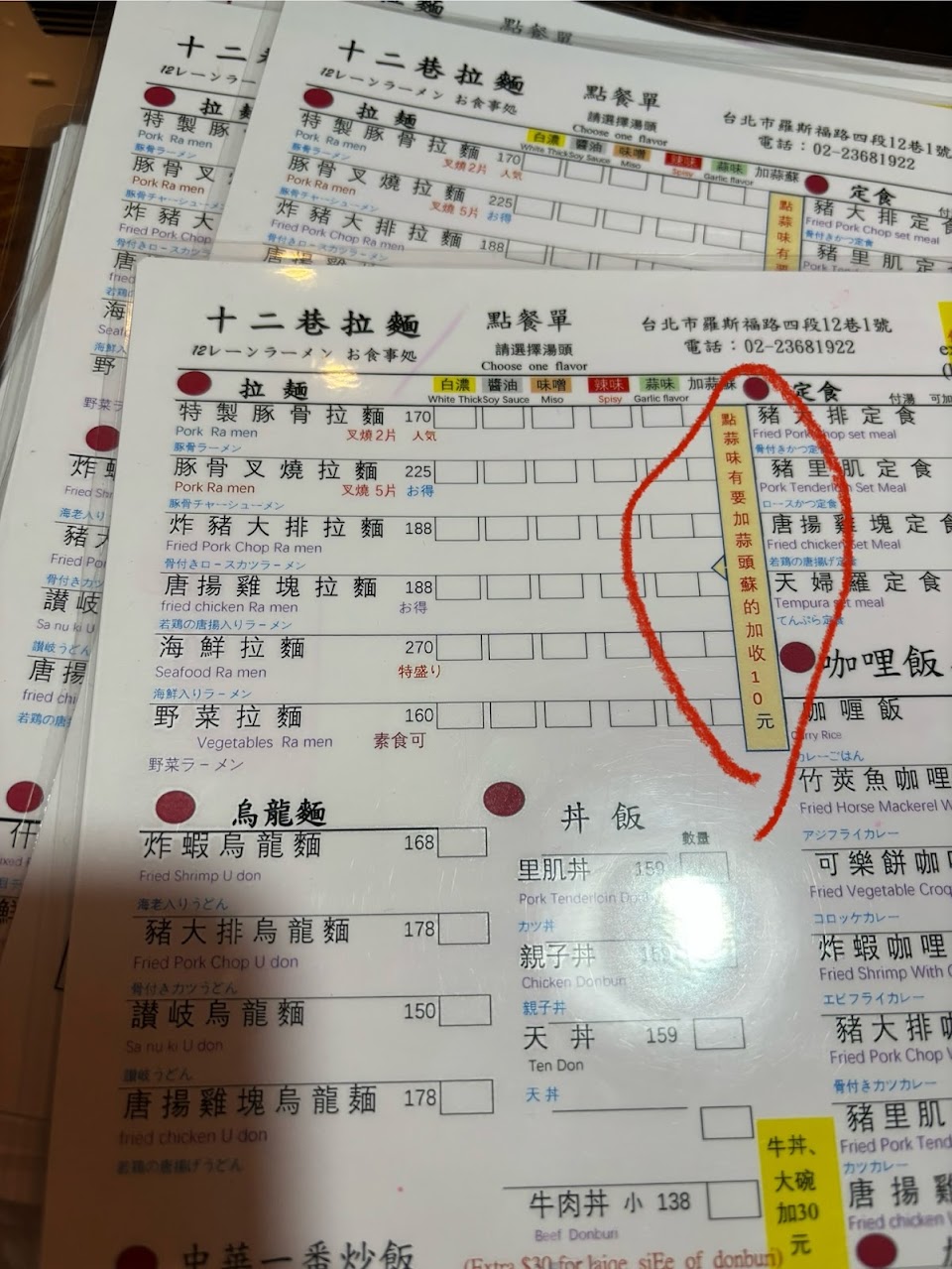 2024最新在地推薦餐廳的菜單_十二巷拉麵的菜單、圖片
