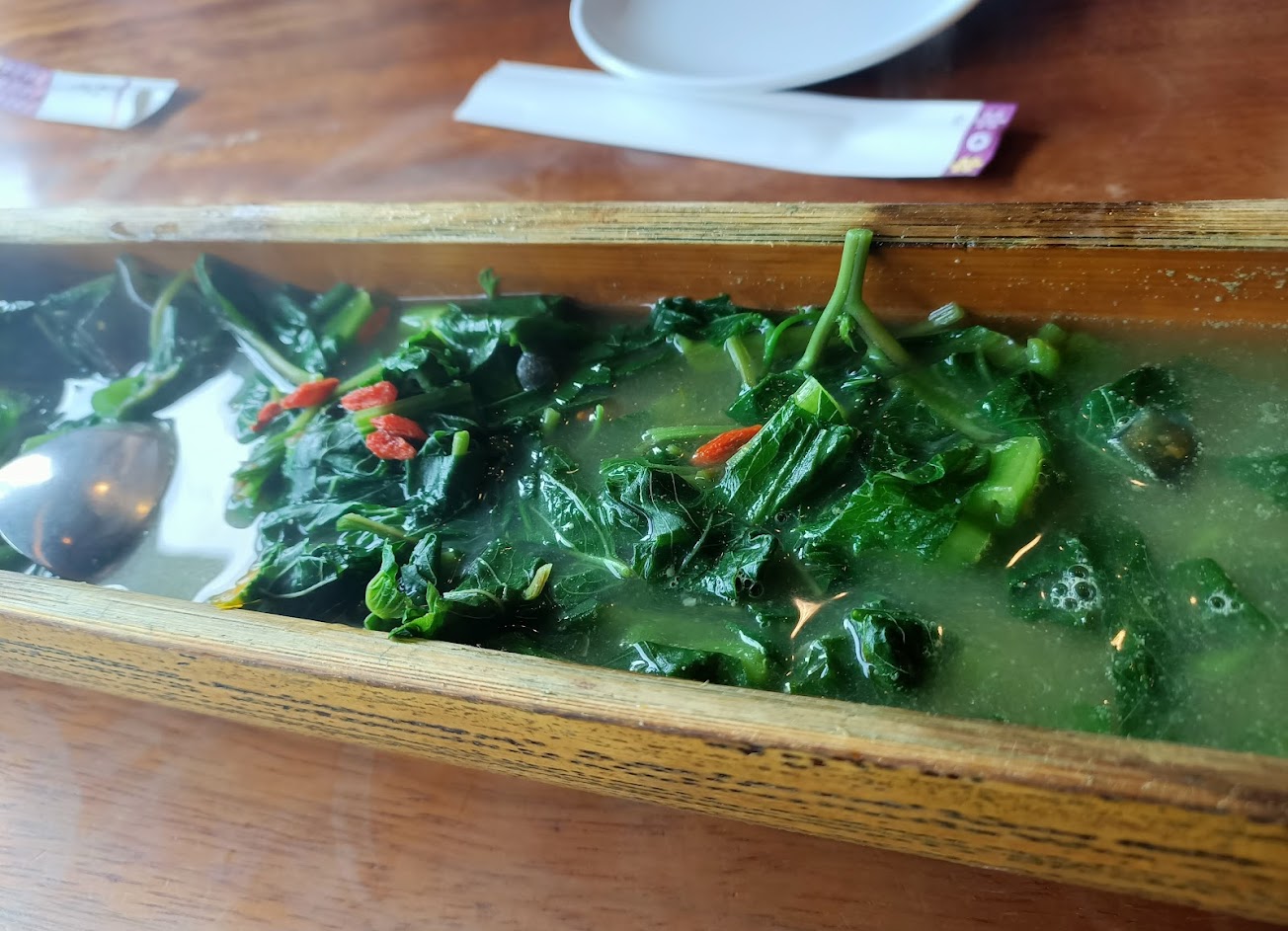 野菜味道調味清淡 但用了竹筒裝 視覺效果提升,吃的時候都覺得健康了起來