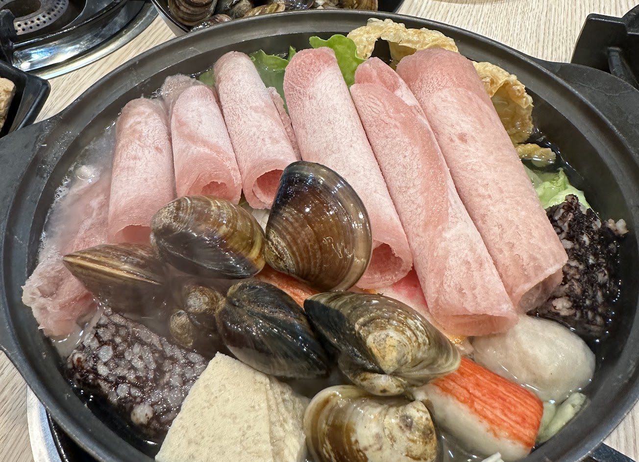 平價的火鍋 空間也大 又有自助吧 餐點的料也多 海鮮食材要再注意品質 蛤蜊豬肉鍋 雖然蛤蜊給很多 煮到最後 有部份煮了 蛤蜊都沒開 要再注意!