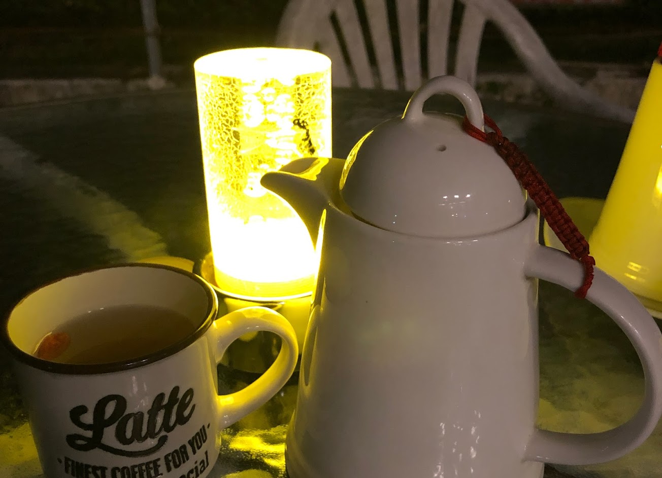晚上騎車上山有點危險,夜景還行,如果店家關燈,天上的星星更美,花茶會越泡月濃需要請人在回沖