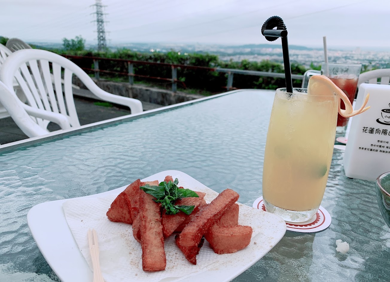 難得花蓮也有可以看夜景的地方 小點心還不錯 很適合來這裡喝茶看夜景聊天