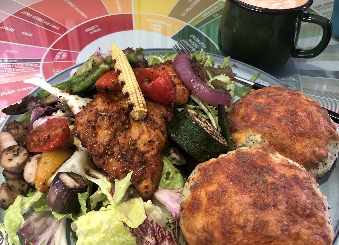 香料雞溫沙拉+煎烤馬鈴薯+松露馬鈴薯起司貝果?? …