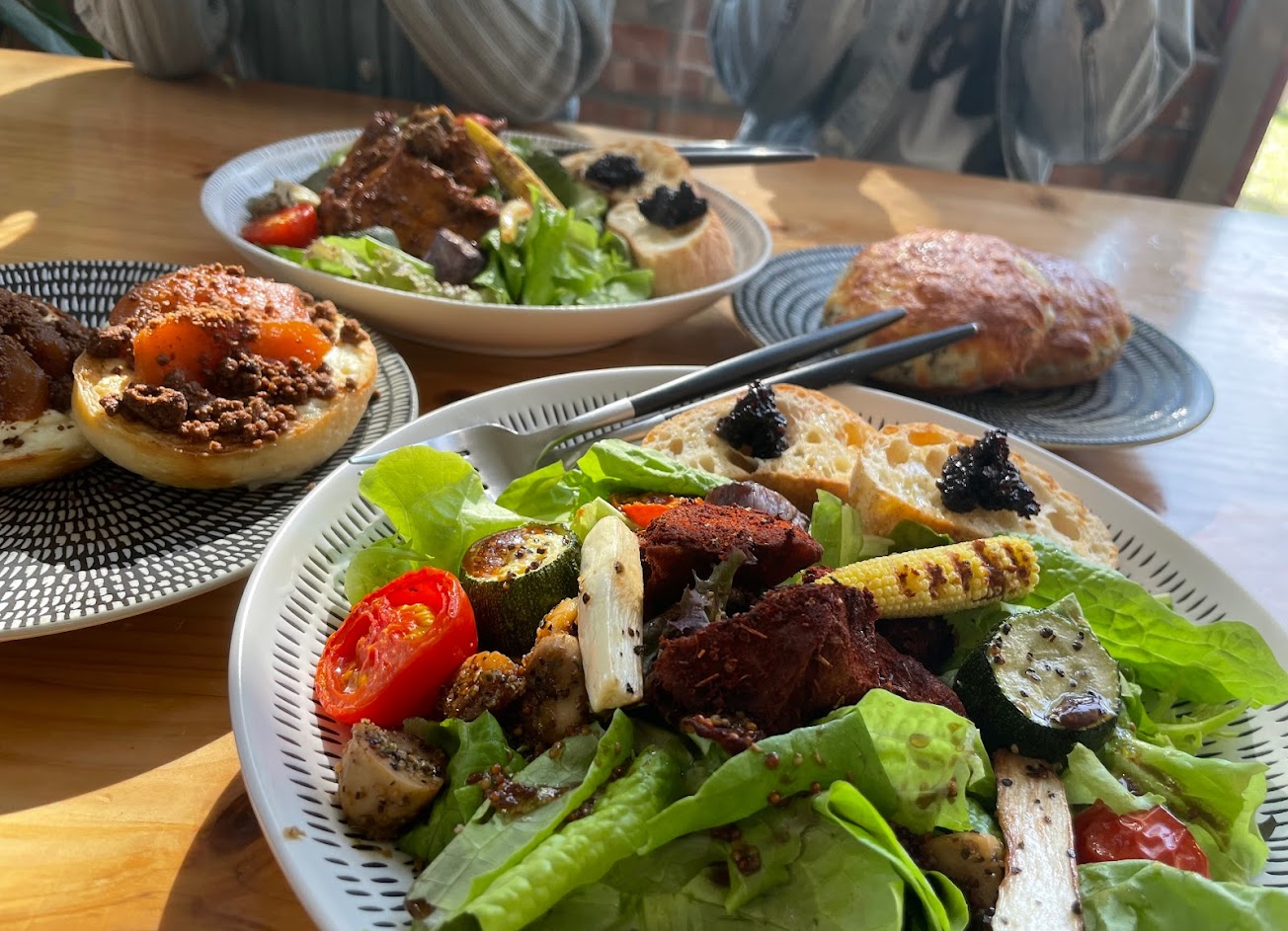 很舒服的環境,溫沙拉跟麵包我都很喜歡,不過食量大的人可能要有心理準備不會吃飽,我自己有加點一份可頌,畢竟麵包好吃!老婆吃的土雞蛋沙拉也好吃。