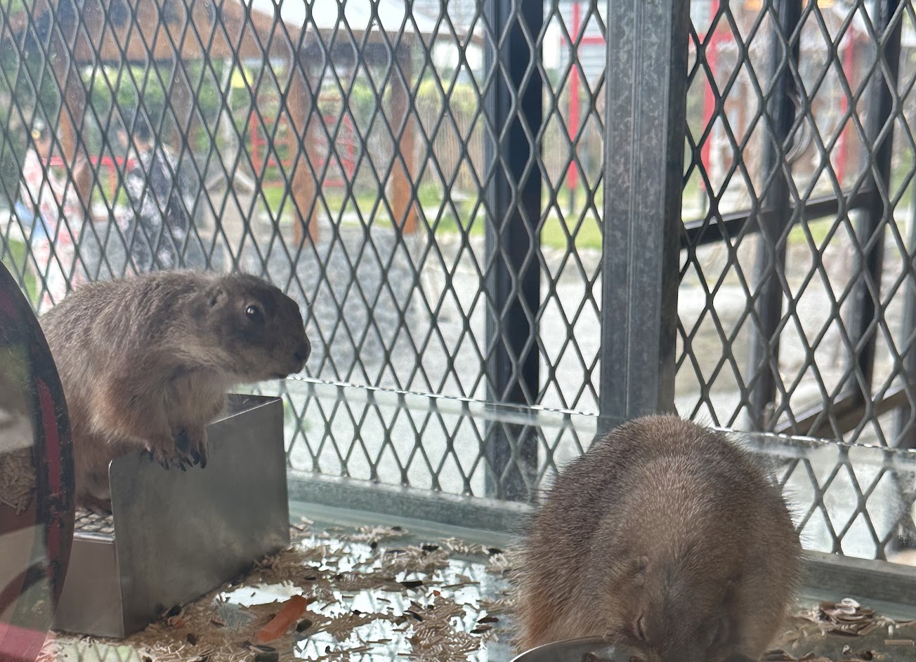 室內的土撥鼠也沒有依照習性照顧 從進門就看到土撥鼠在做挖東西的動作 到離開都是 卻沒東西可以挖 只有空空的玻璃隔板 土撥鼠的木房子都被抓出洞了 仔細看玻璃上都是動物的爪痕?