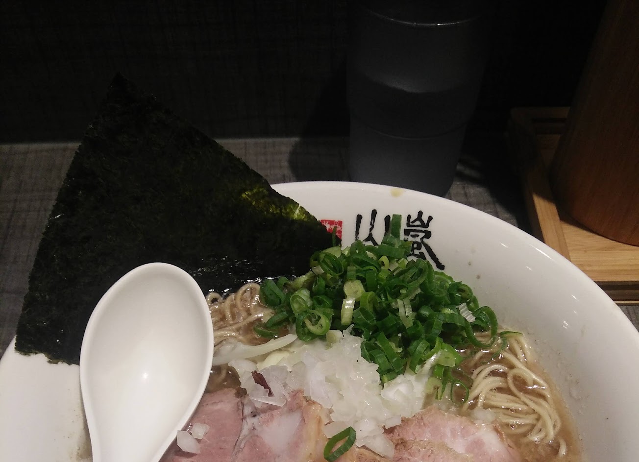 小巷中的店面,卻有多人慕名而來,並在外排起了長長的人龍,小小的店面,點餐跟日本一樣用自助點餐機,店家很細心的詢問湯頭濃度與麵的硬度,現點現煮,麵點上桌,滿滿的蔥山,蔥炸彈真的不是假的,配上豬背脂的濃郁白湯,真真正正道地日本口味,濃鹹湯頭配上白開水,真個回到日本的感覺,吃完後拉開拉門穿出暖簾,又回到台灣了