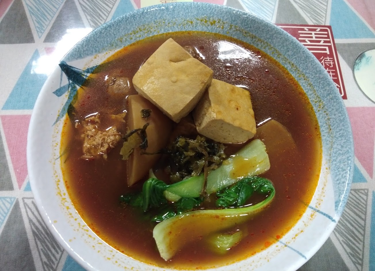 紅燒臭豆腐麵酸酸甜甜的、微辣,好吃!