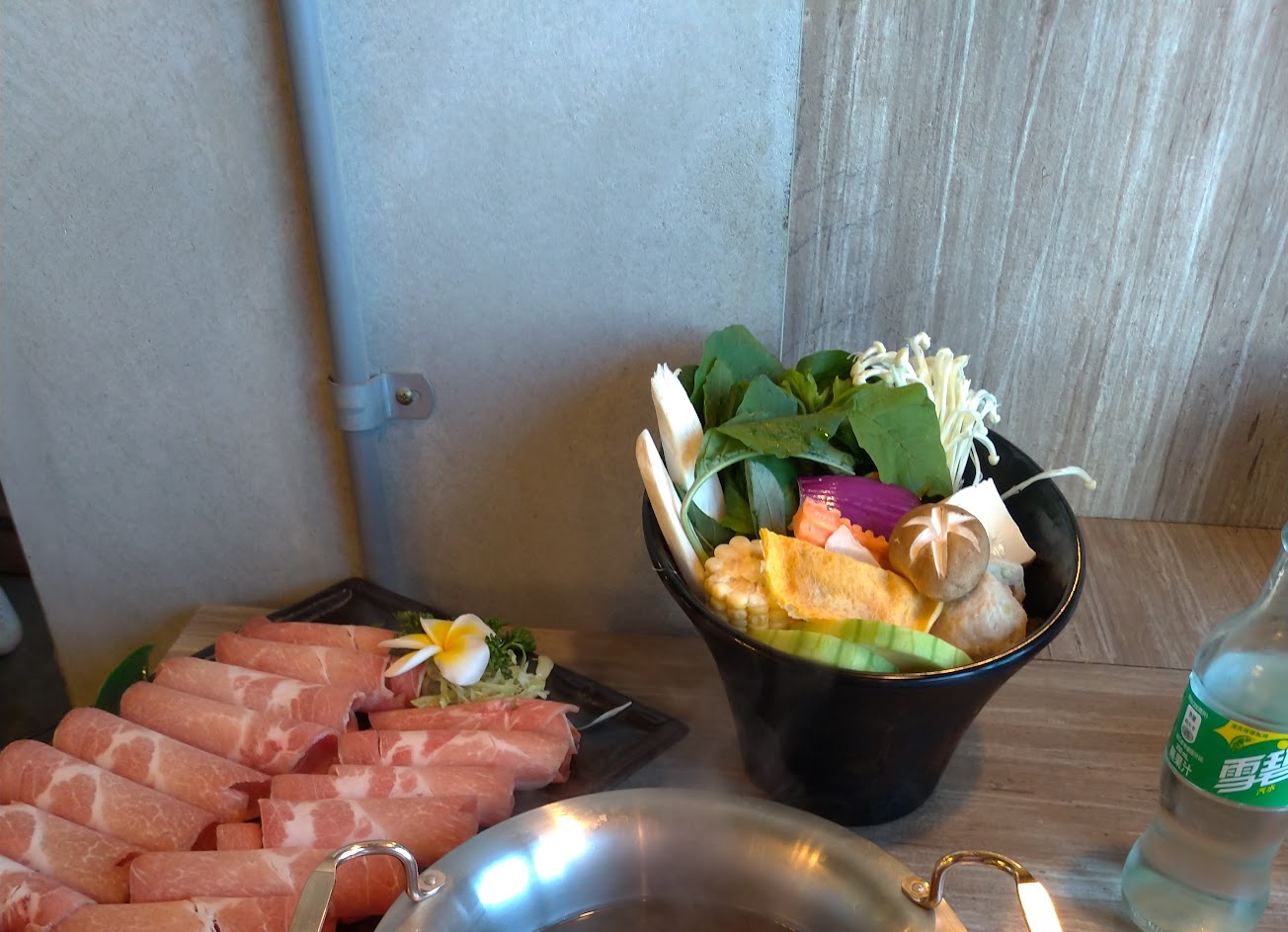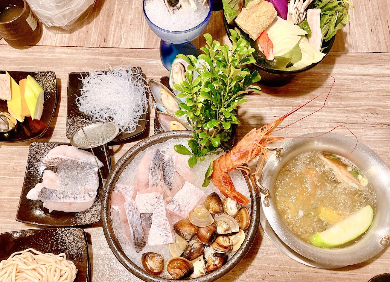 這是一家擁有絕佳海景的火鍋店,菜單項目簡單大致分為海鮮類和肉類,另外有一些單點食物。湯頭選項有一個「部落湯」(加70元)很特別,是用飛魚乾熬煮成,味道很鮮美清甜。蛤蠣鮮蝦鍋(480元)有白蝦和一隻牡丹蝦,數顆蛤蠣。乍看之下覺的單價不低,但是白蝦和牡丹蝦的鮮甜脆,還有每一顆蛤蠣白胖肥嫩,這個收費是非常值得的。很幸運坐在窗邊看著美麗的院子和大海用餐,老闆說可以下去庭院拍照,再往下走可以到達海邊。食物,美景和服務都非常好,是很愉快的用餐經驗。
