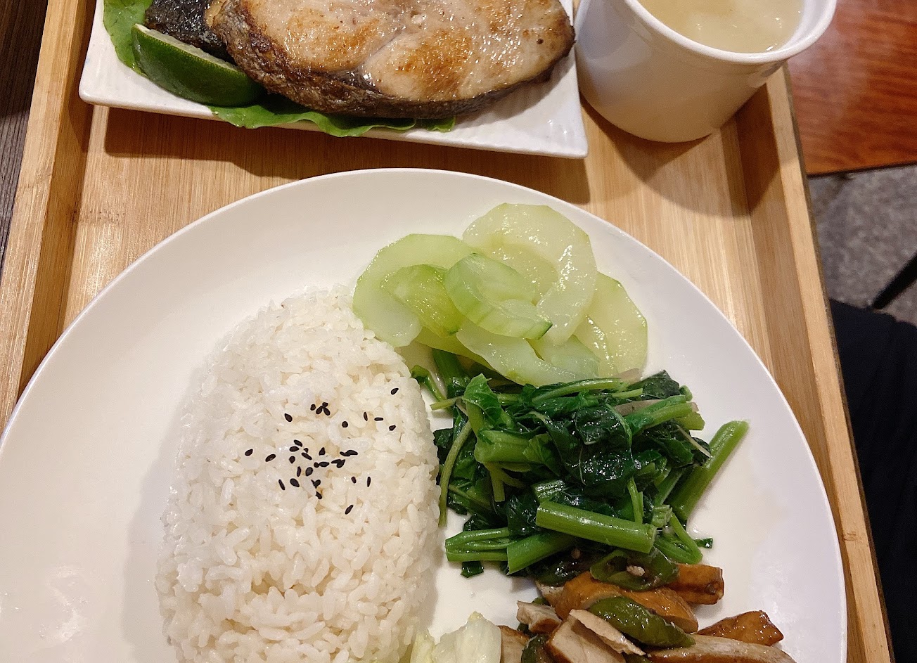 套餐真的很實惠,這次點的蔥爆牛肉,肉是醃漬過的很軟嫩,量也很多,菜的味道整體偏清淡,但是分類很足。