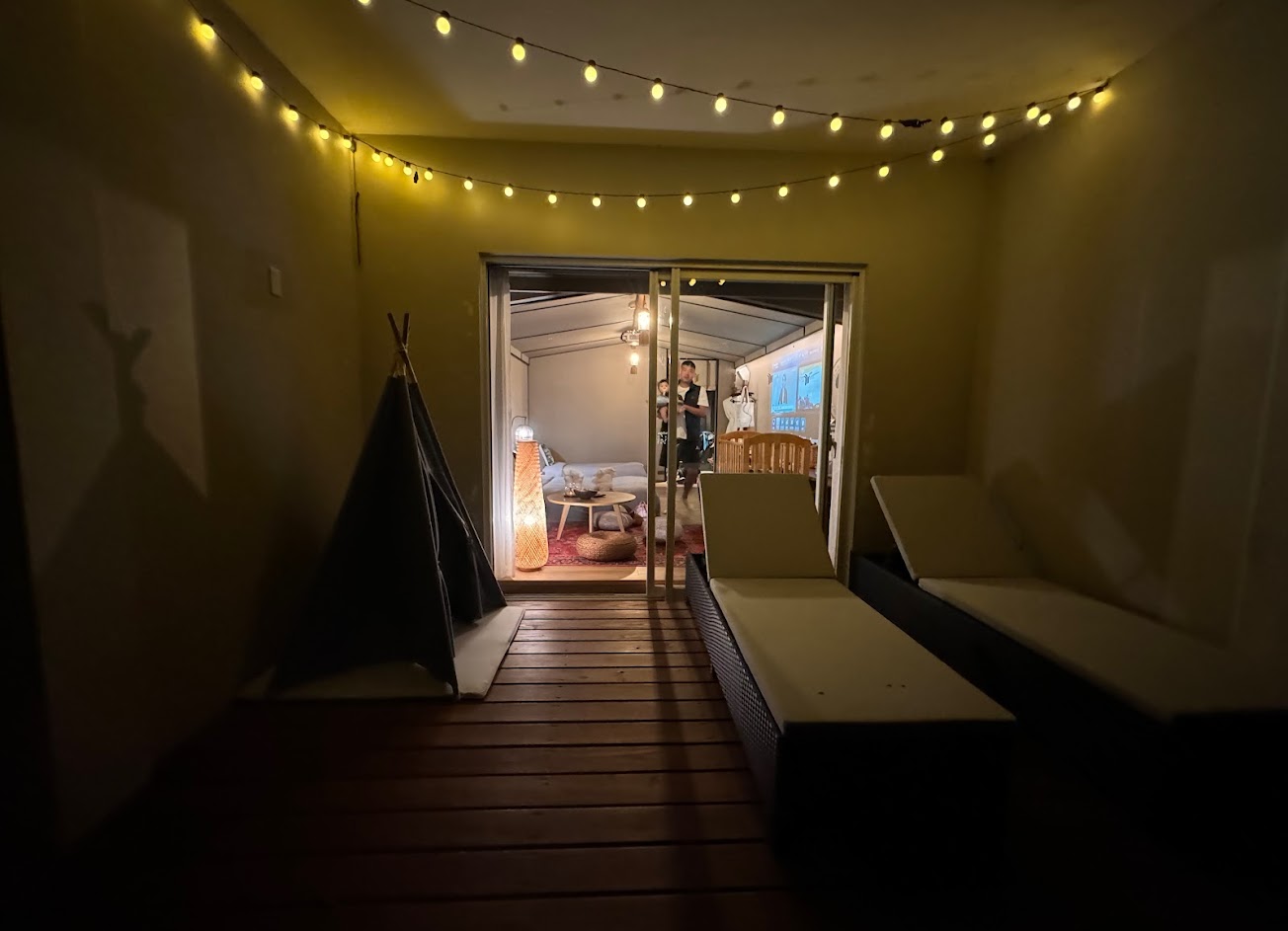 5.這次是入住1樓的露營帳篷裝潢的房型,睡起來很舒適,房間裡面的投影設備取代電視,要看電影都可以。浴室水壓夠,以至於沖澡的時候地上的水宣洩不及有一點小積水溢出,但排水還算順暢,沒過多久就排光了。吹風機的風量充足,不會吹到天荒地老。