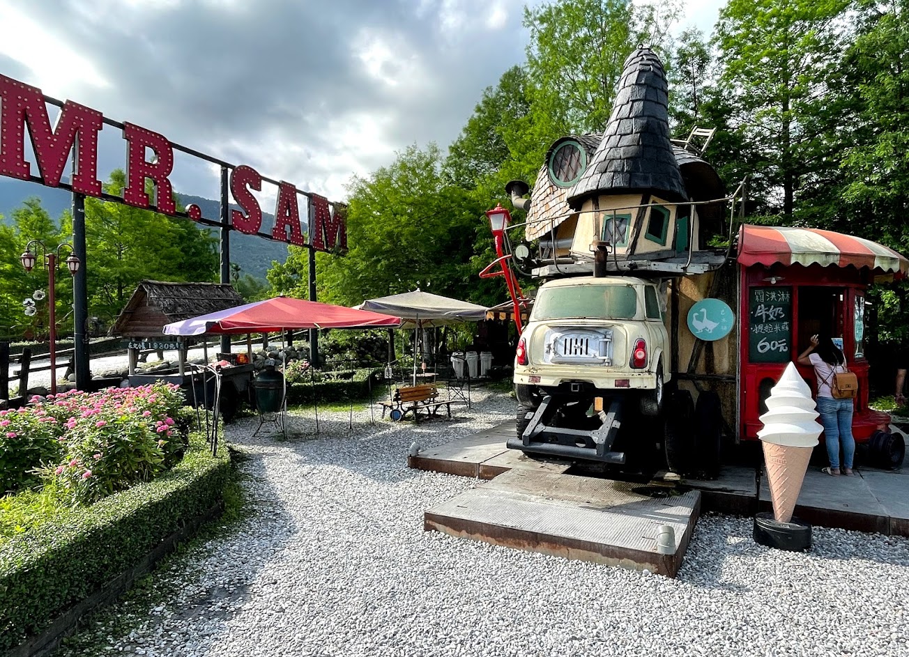 很獨特的咖啡館Mr.Sam-山姆先生咖啡館像童話故事般的房子,卡通造型的餐飲車,停車費一百元可以兌換咖啡點心,飲料獨特雖然地方範圍不大,但大家來看看打卡拍照小巧的觀光景點,
