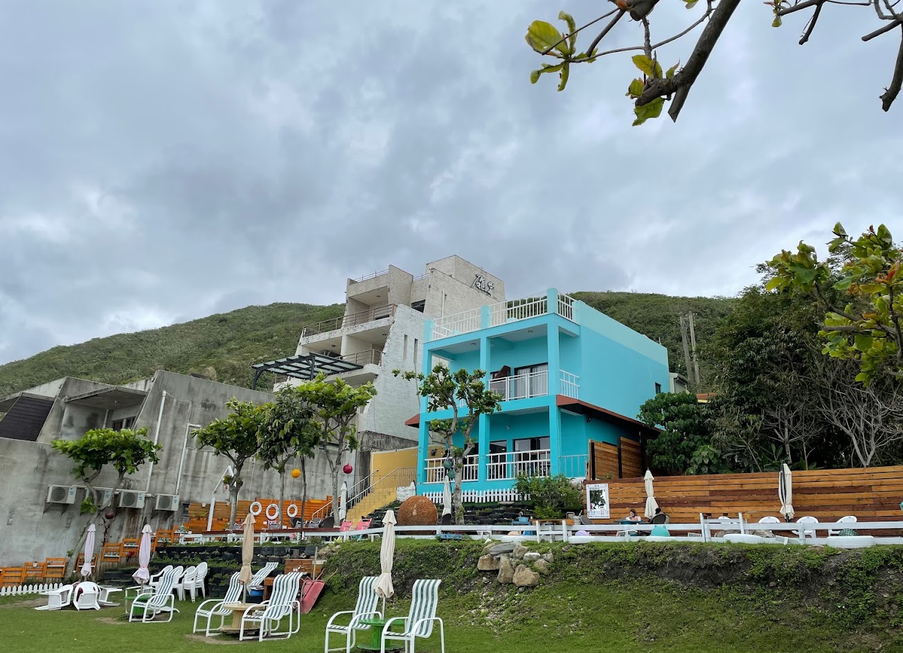 這次的旅行 最希望的就是可以在一間與海很近的地方放鬆一下 擔心 附近一些知名的網美景點人太多 找到了這個很棒的秘密基地 當天沒有客滿 觀海最棒的位子也還有 食物是一些簡單的炸物 飲料我們點水果茶還可以 這裏的腹地不是很大 但是很多可以拍照的小佈景 還蠻喜歡這邊整體的感覺