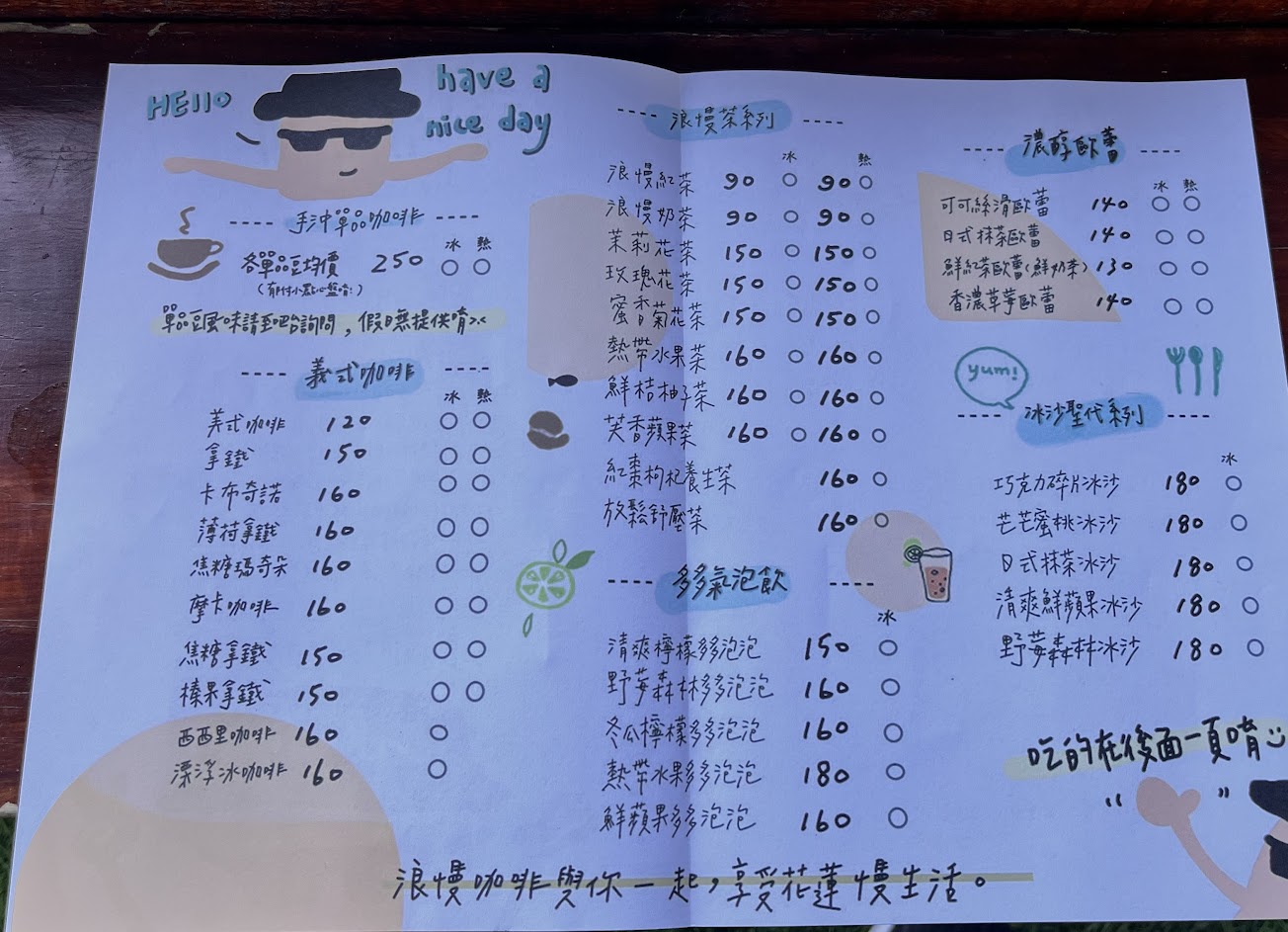 去花蓮想要找一個慵懶的地方耍廢度過一個下午,但是不想去那種認真會人擠人的網美景點,意外找到這個很棒的地方!悠悠哉哉的躺著看海~而且老闆的歌單也太棒了吧?根本就是把我手機裡的歌放一遍的感覺!還有菜單設計的很用心,園區的佈置也超漂亮,很多可愛的小角落~感覺到店家很用心在經營❤️推薦大家可以沒事來坐坐看看海~心情超好! …