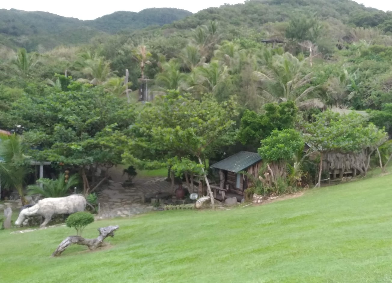 須經過一小段又小又陡的山路才能到達的一處地方,背山面海,有小草原小山丘及各式造景藝術,感覺像是到了世外桃源
