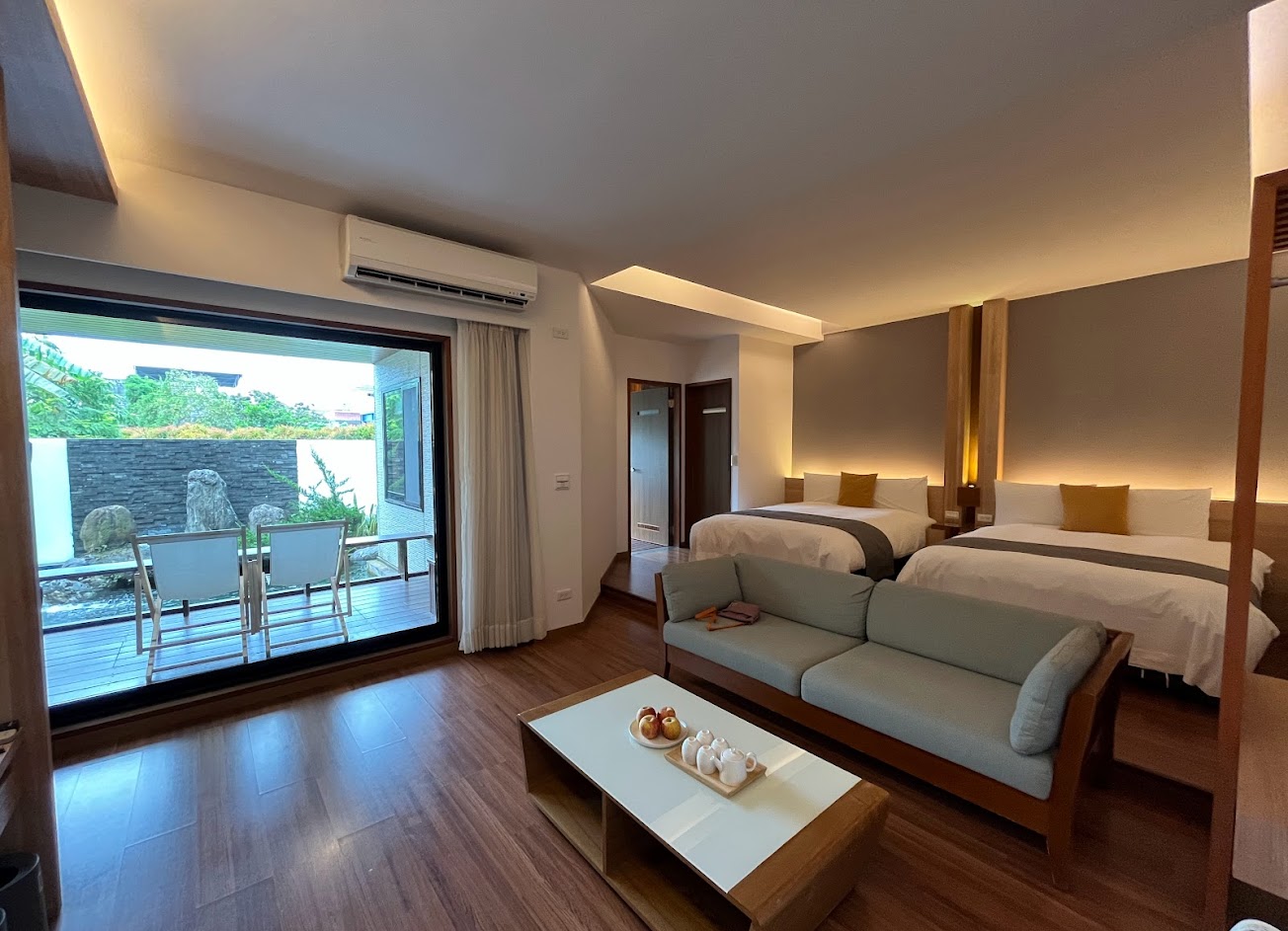 民宿環境清幽適合渡假慢活,房間乾淨明亮空間大,陽台視野佳,來啜飲一杯咖啡慵懶放空,晚上在浴室超大浴缸泡個香氛澡,享受浪漫!最加分的是玻璃屋餐廳,綠色植物裝點,加上挑高設計通透視野,看著窗外景緻心曠神怡!