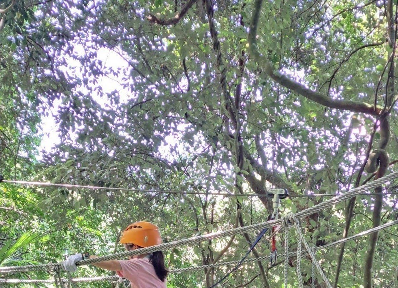A行程以溜索為主,輔以少部分的攀爬與走高空,但整體設施高度都不算高,不用擔心。