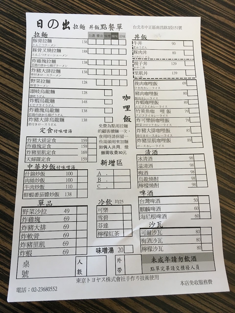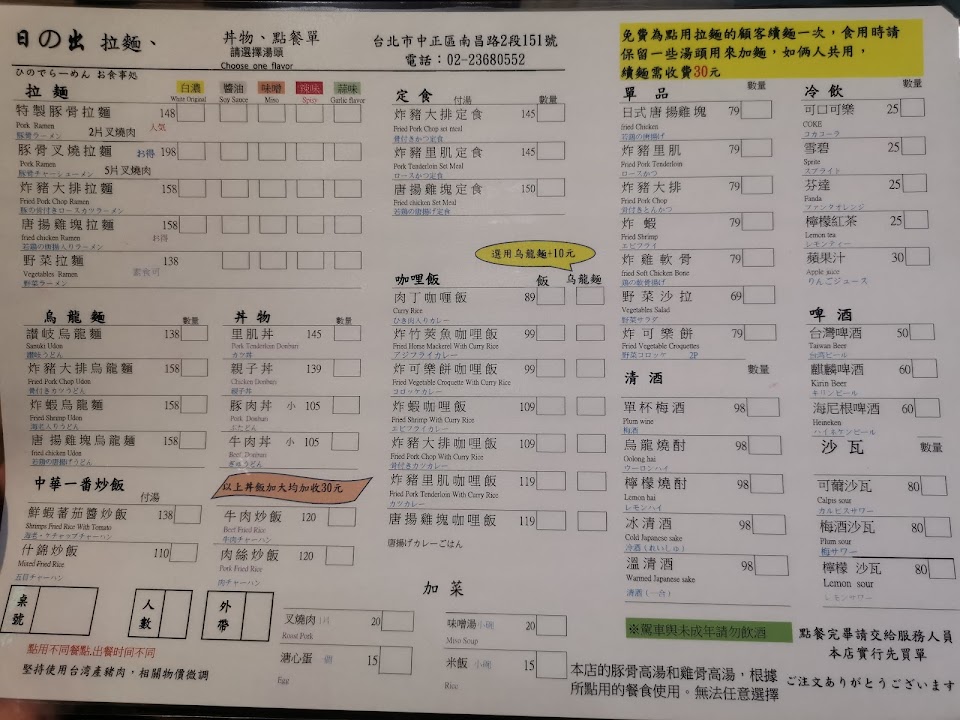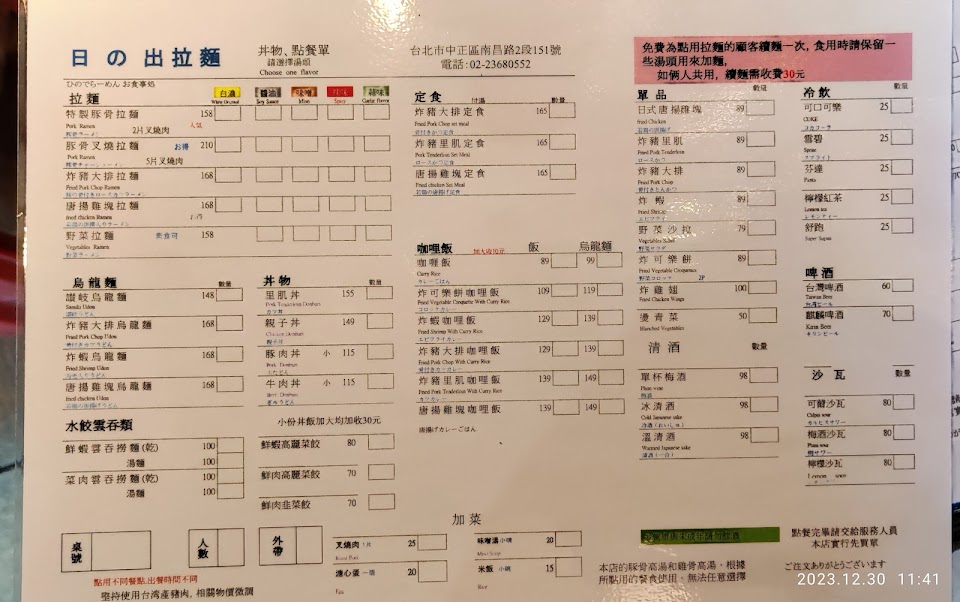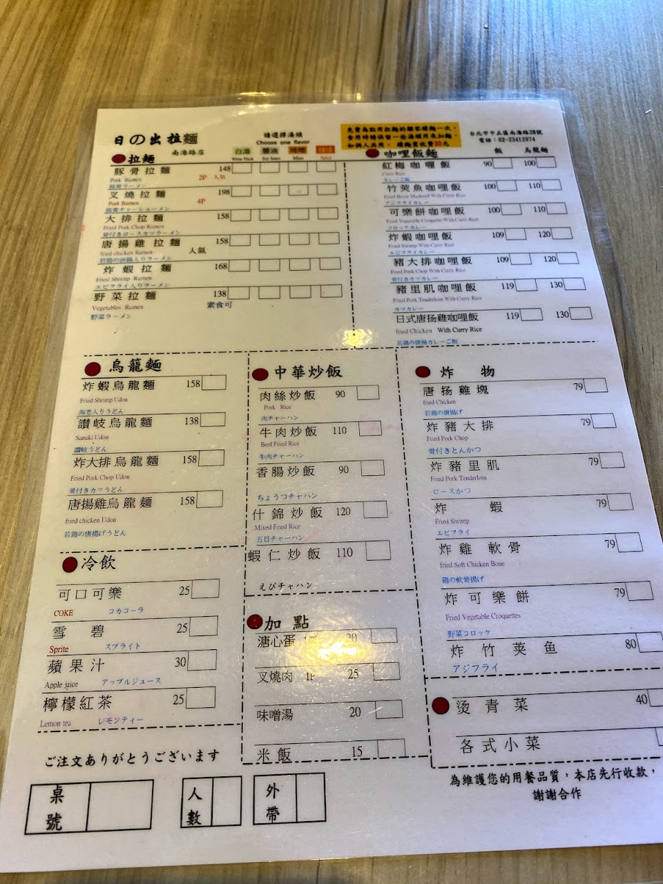 2024最新在地推薦餐廳的菜單_日出拉麵(南昌路店)的菜單、圖片