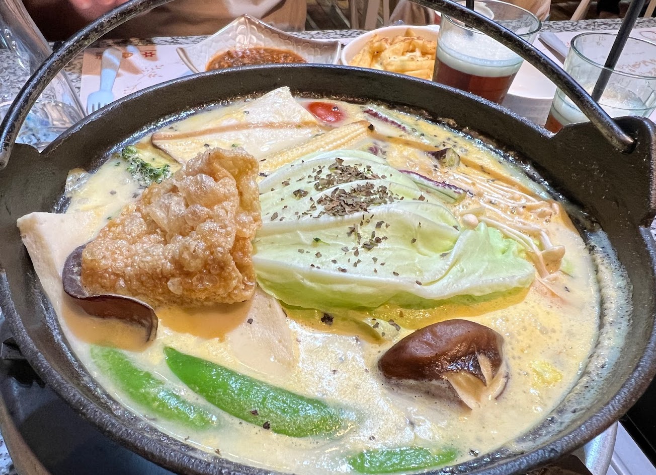 也點了阿美公主鍋,濃香的起司牛奶味,也很好吃,老闆娘還很幽默的說,吃完就變公主了哦!?
