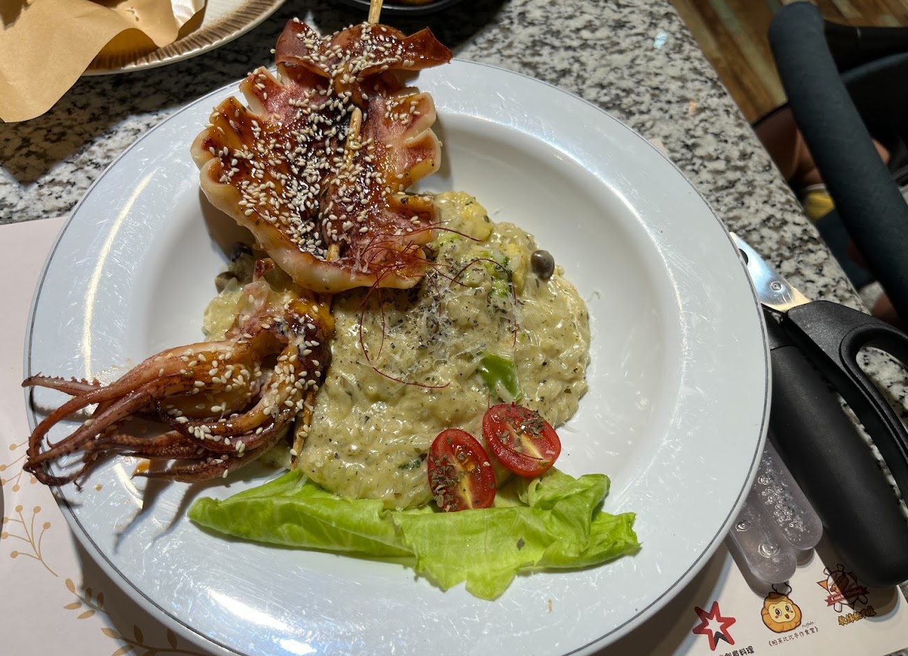 魷魚不錯!培根烤肉串有點太乾…但蔥很好吃!