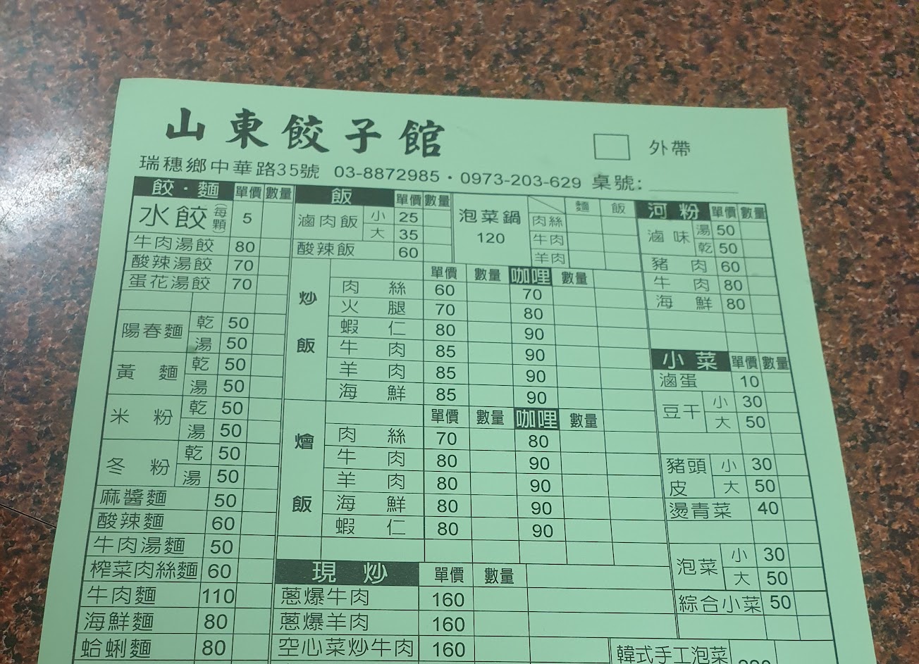 外帶了十顆餃子結果回民宿打開一看十顆水餃破了十顆,還幫我加了醬油,簡直就是韭菜炒水餃皮,看了整個心情都不好,不過小菜地瓜葉量很多。