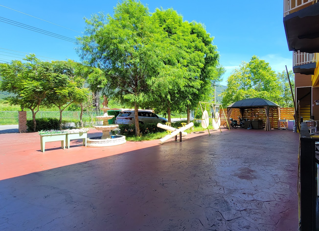 老闆、管家人很好又熱情,環境乾淨、清幽,附有小朋友的遊戲設施(晚上有燈光效果喔!)。大廳有旅遊照片集錦跟美食攻略等,推薦阿亮雞排、蘭花町(都有外送),還有帕芙比比手作食堂?