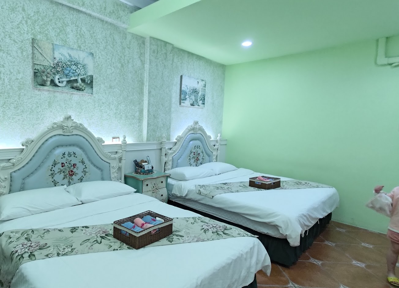 二樓房間開門要注意,會有飛蚊,房間還蠻乾淨,牙刷牙膏要到櫃檯領取,四人房一間大約3400左右(七月份左右來住),可惜沒有附早餐可以享用~建議可以有多一點USB插頭或普通插頭,四人房大家都要充電,有會更好~因為管家在客人入住時,沒有提醒喔!我們比較晚回到民宿~