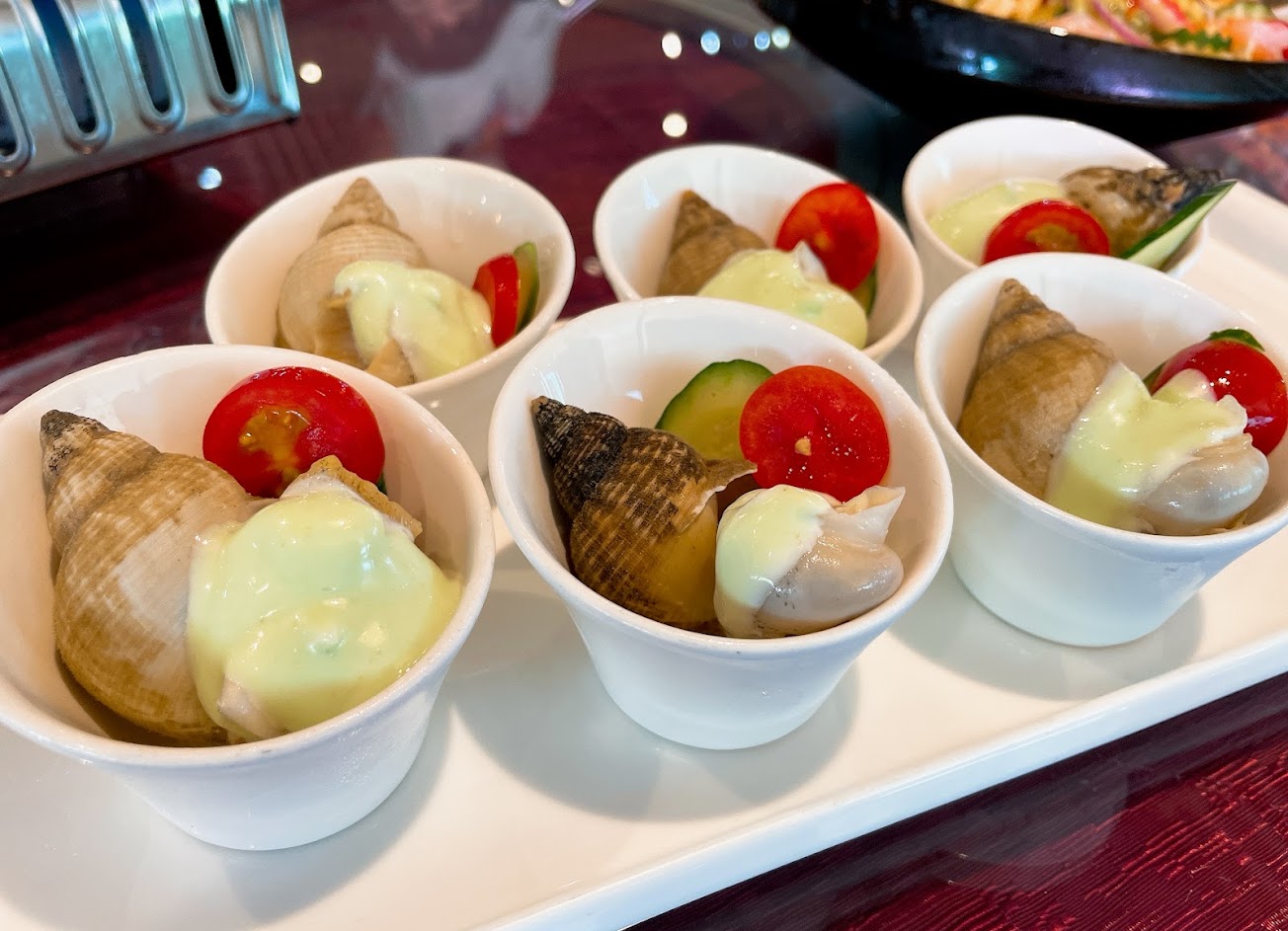 石班魚, 牛奶螃蟹鍋, 蚌殼海鮮, 水果盤