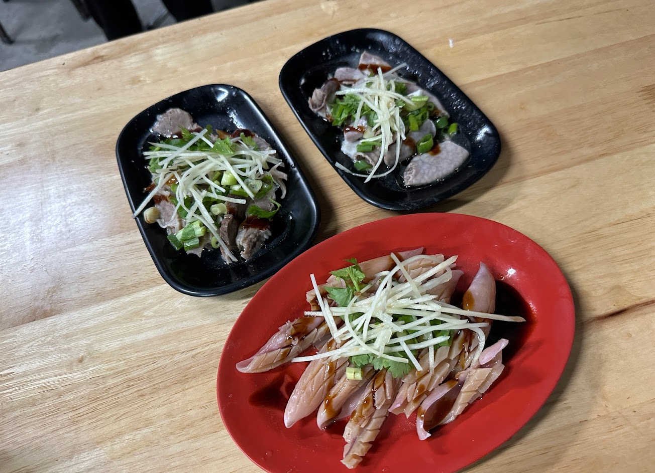 小菜豆乾是有認真滷的那種喔,鴨賞口味偏甜,小黃瓜酸甜度剛剛好我們愛吃辣,就淋了老闆自製辣油