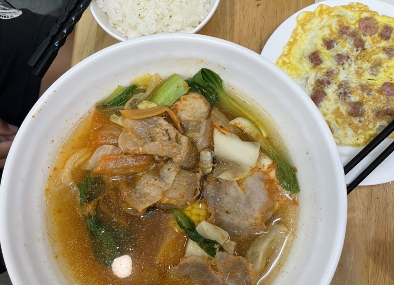 菜單上的品項很豐富,從小點心到份量較多的主食都有。點了九層塔蛤蜊麵和小肉豆,麵體吃起來就是泡麵,調味不會太重,宵夜時間能有一個乾淨舒適的地方吃點小點心還不錯。結帳除了付現之外也有Line pay可以使用,自備環保杯也能折抵,滿方便的。用餐環境很乾淨,服務態度好,出菜速度也快,內用位子滿多的,餐具的使用採自助式,要到櫃檯旁邊去拿,吃完之後餐具要拿到後面回收。