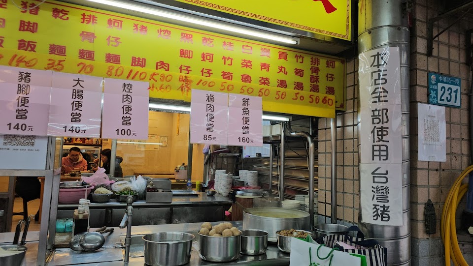 滷肉飯偏淡,不鹹也不甜,滷白菜很爛但味道也很清淡,豆腐也沒入味,內用桌上不會有菜單,要去外面點餐,荀仔湯沒味道,排骨酥湯胡椒辣到不行,豬腳份量很少,