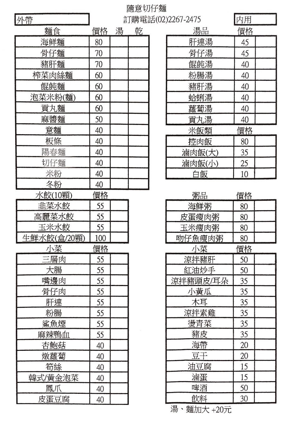 2024最新在地推薦餐廳的菜單_隨意切仔麵的菜單、圖片