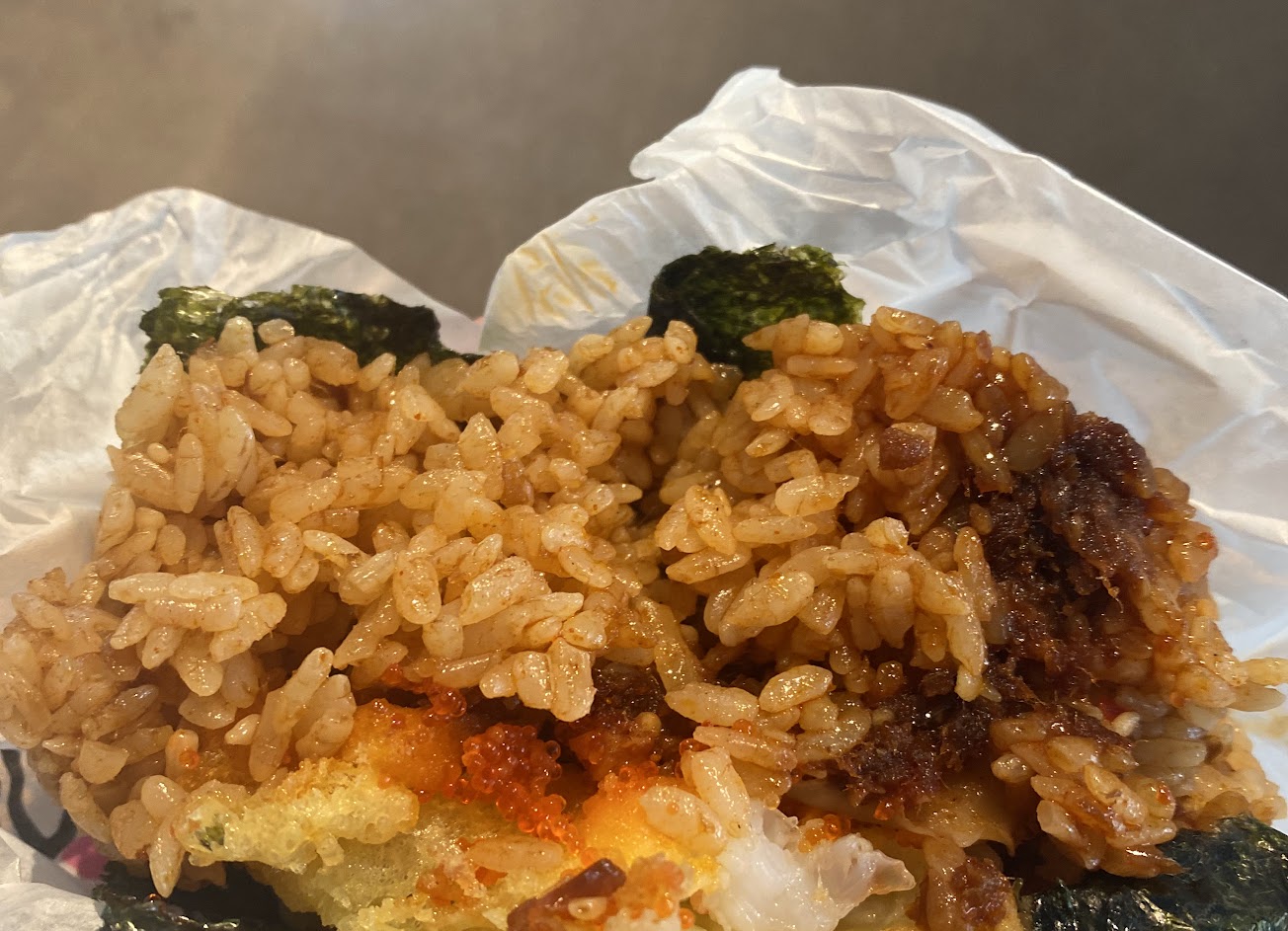每口都吃的到魚卵卜茲卜茲、干貝唇Q彈、酥脆的天婦羅蝦~跟一般飯糰有大大的區別,去澎湖必買!