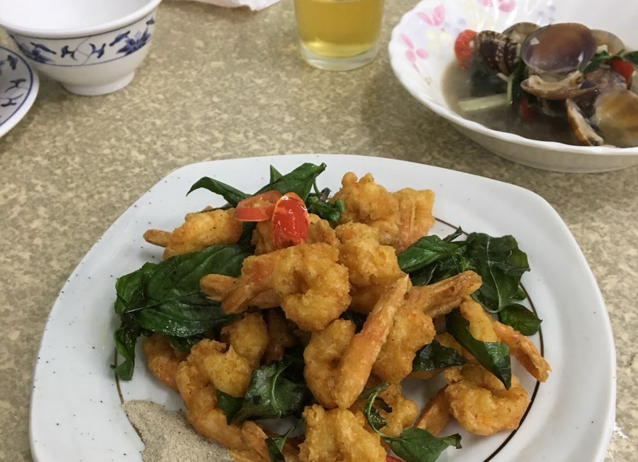 無菜單,外面有什麼點什麼,東西新鮮,好吃,不平價,等很久。炒飯、炒絲瓜、海膽煎蛋、魚湯、蝦子7支、小卷沙拉,一千初頭。