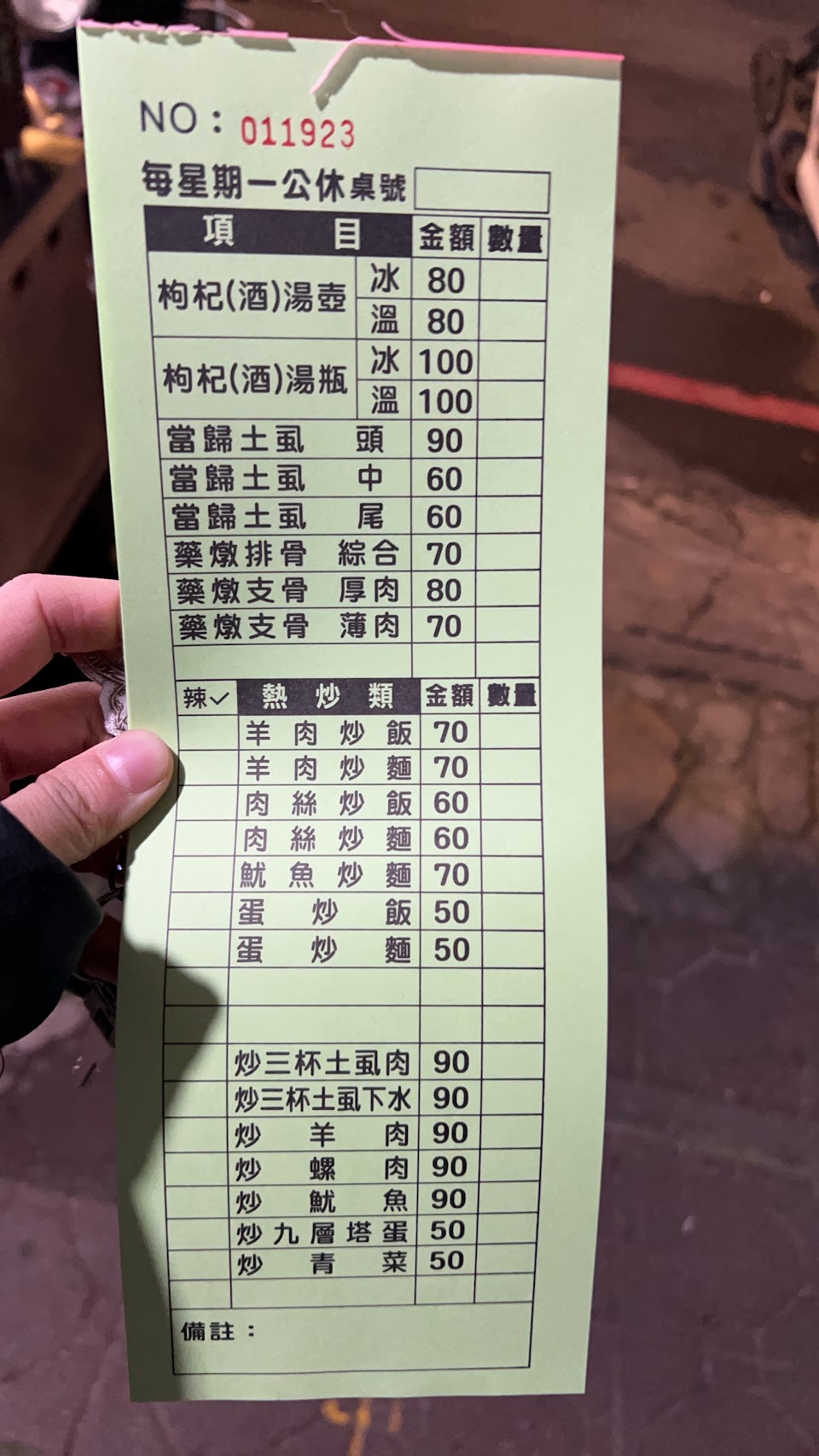 2024最新在地推薦餐廳的菜單_原延吉街金雕銀樓前當歸土虱藥燉店的菜單、圖片