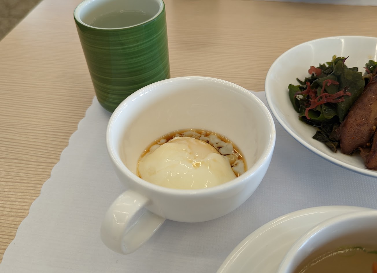 本日的料理為:海菜花枝丸湯、小管?什麼的、盤仔魚、炸蝦咖哩飯、仙人掌優格冰(好像還有開胃飲但忘了是什麼了?)