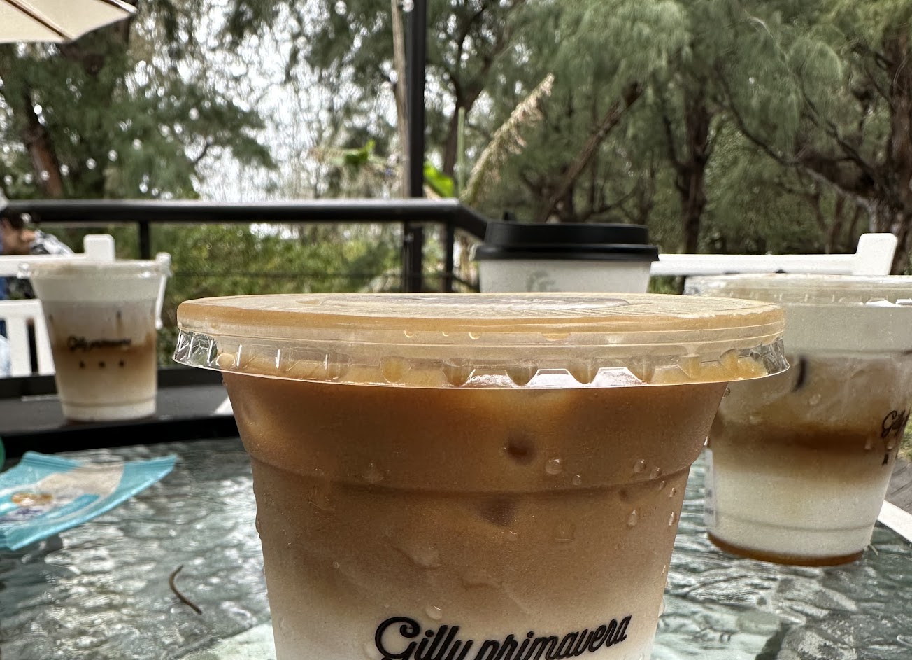 海邊風景不錯,有樹蔭有涼風,蹲坐在木棧板上就算眼神放空也舒服。吉林春很多人推薦,室內有冷氣位置少,客人都坐著不願意走,酷暑之下坐在樹蔭下也沒想像中熱,櫃檯男生服務冷冷的,飲料咖啡還不錯,櫥窗的可頌跟送來的可頌大小差太多。