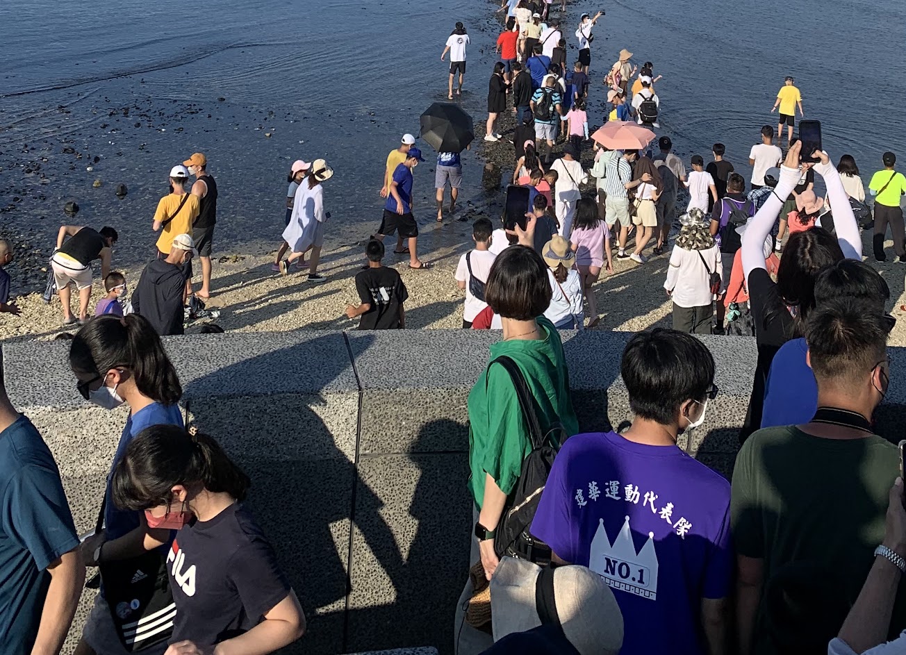 一定要先查潮汐表,若要看分海就至少要半小時前抵達,若遇到慢潮就會等更久,現場會有工作人員說明何時開放通行。