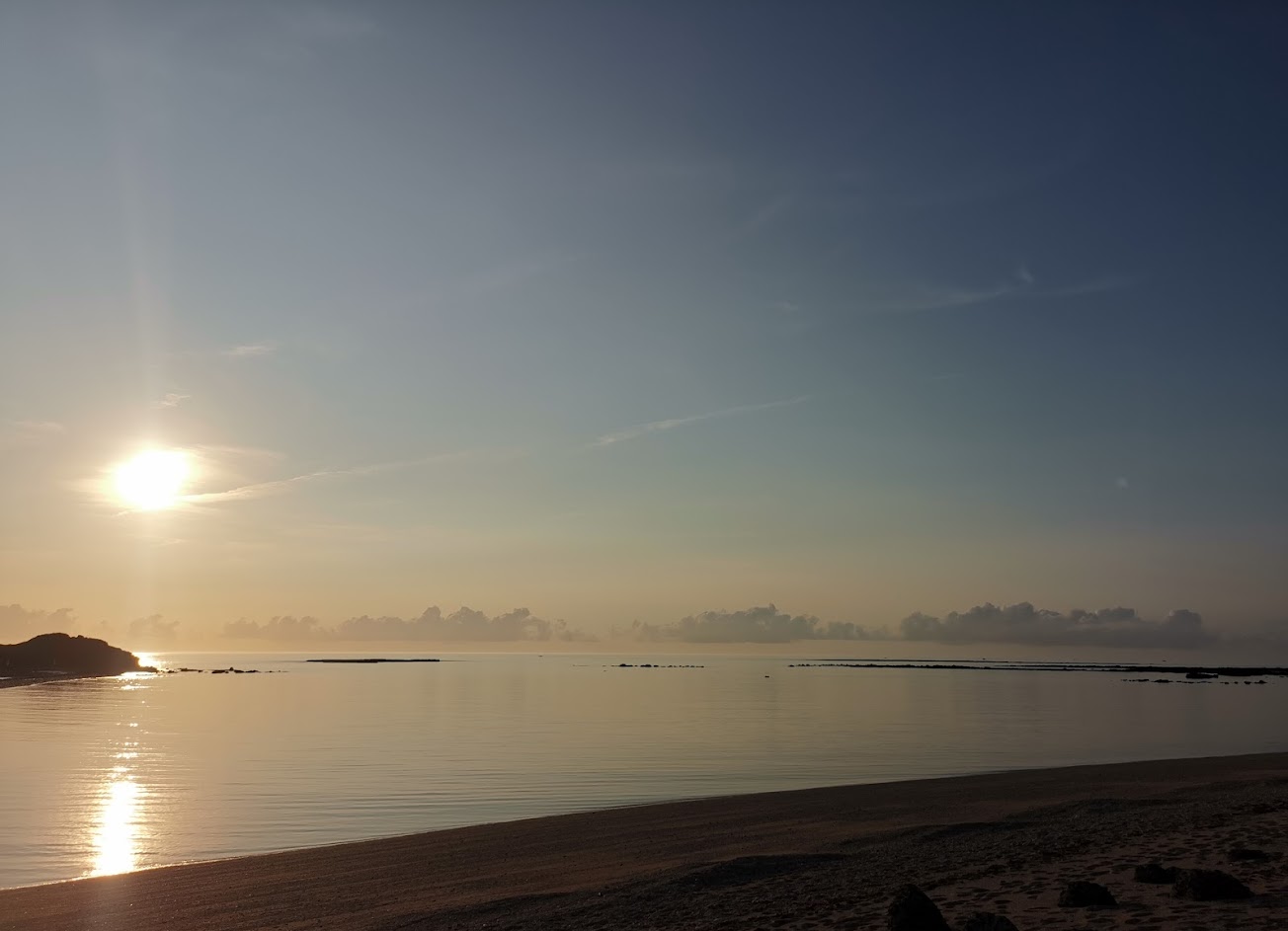 能在摩西「分海」時,又剛好看到旭日從島嶼的那端東昇而起,是一件幸運的事。這次的我依舊不夠幸運,旭日雖然東昇,但被雲層稍微遮住,不過這樣瑕疵的美,依舊讓我感動萬分