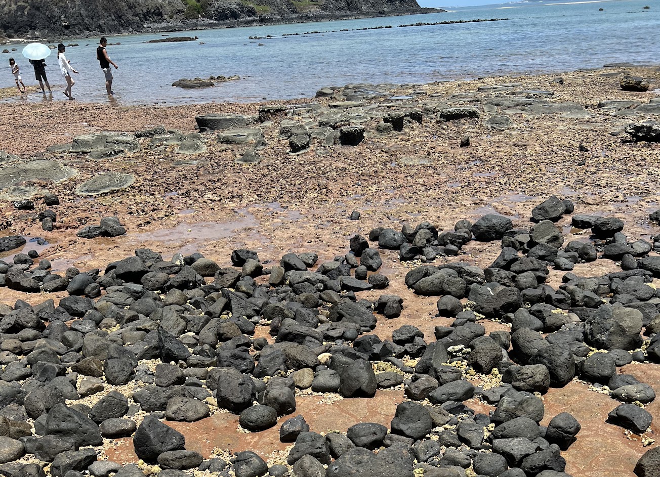 很熱非常熱,但是可以帶小朋友來走走。退潮的潮間帶有很多小魚小蝦跟寄居蟹可以看。