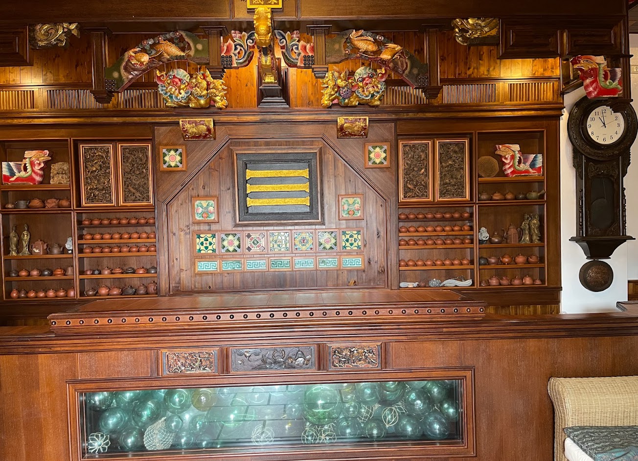 澎湖菓葉的一個民宿兼餐廳,內部裝潢古色古香,收集了大量的寺廟文物古董,值得一看