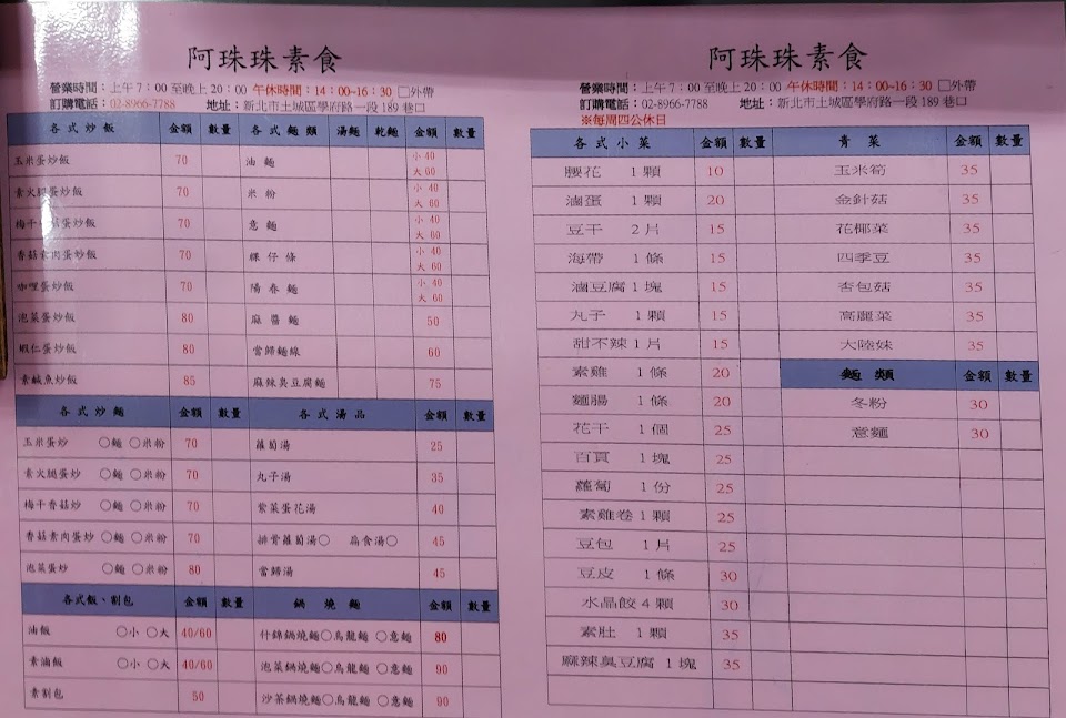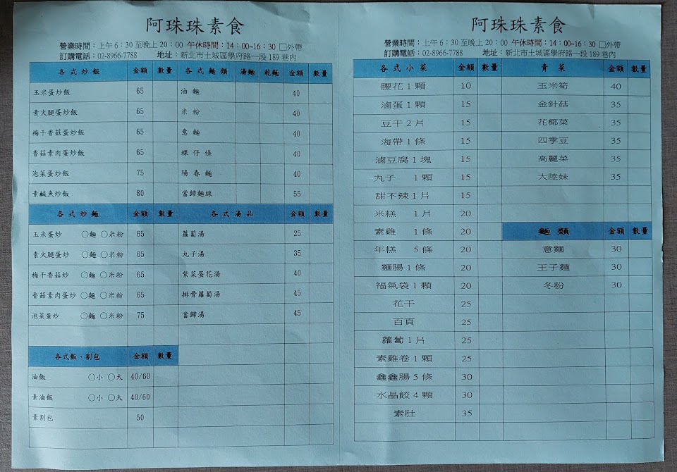 2024最新在地推薦餐廳的菜單_阿珠珠素食的菜單、圖片