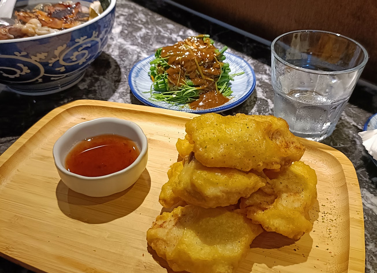 環境跟用餐氣氛都很棒,重點是拉麵超好吃,另外點的炸魚、透抽還有黃金杏鮑菇都秒被掃空!