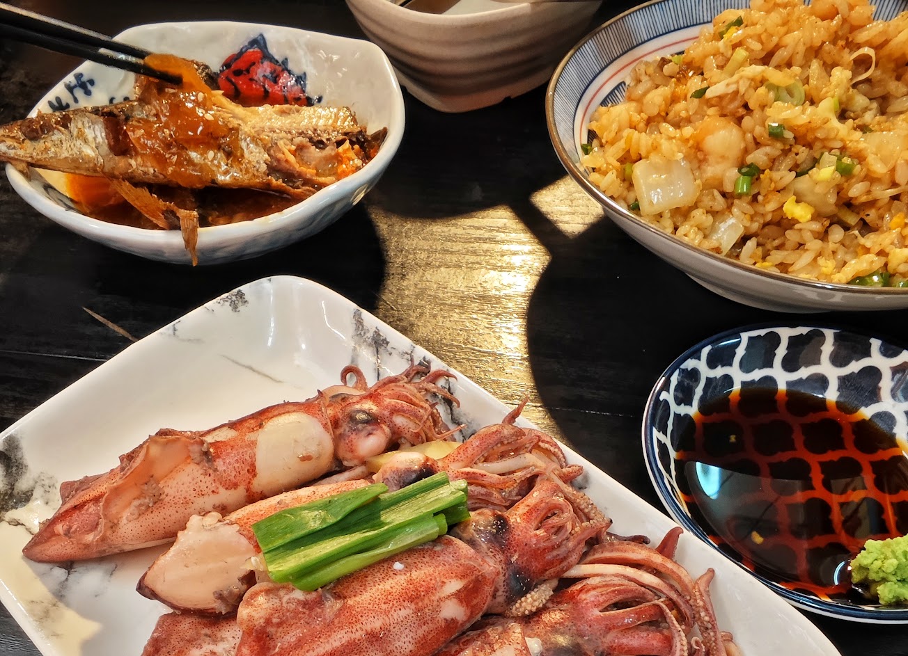 佃 煮 秋刀魚 餐, 海蝦炒飯, 涼拌透抽