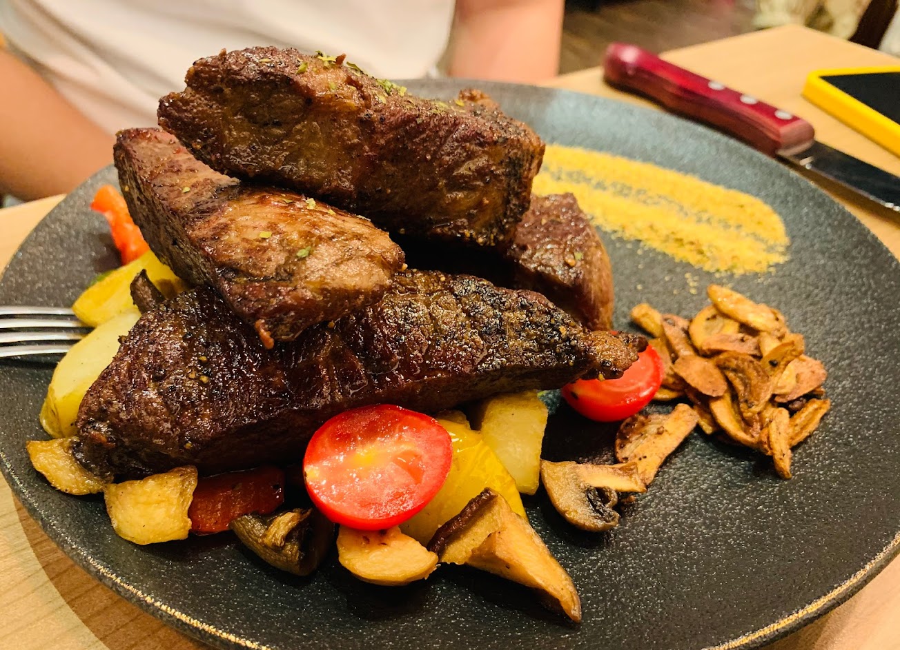 牛排、雞腿排甚至旁邊的配菜(馬鈴薯跟炒菇跟蒜片)都好好吃~~~